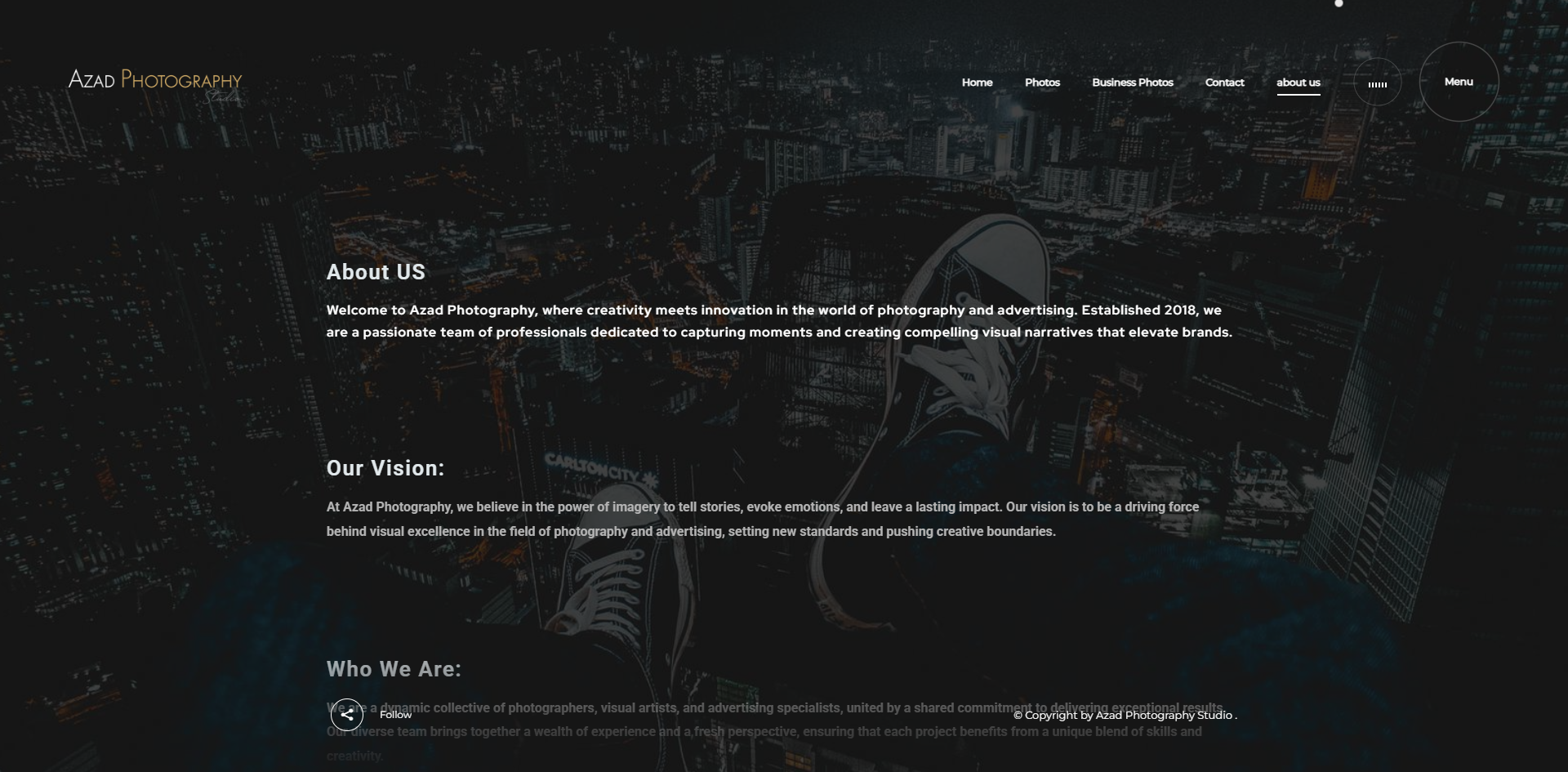 Azad Photography is a full‑service photography studio specializing in portrait, commercial, event, and passport/visa photography. The studio combines professional equipment, experienced photographers, and creative editing to deliver high‑quality images that meet clients’ needs — whether for personal portraits, corporate use, or official documents.