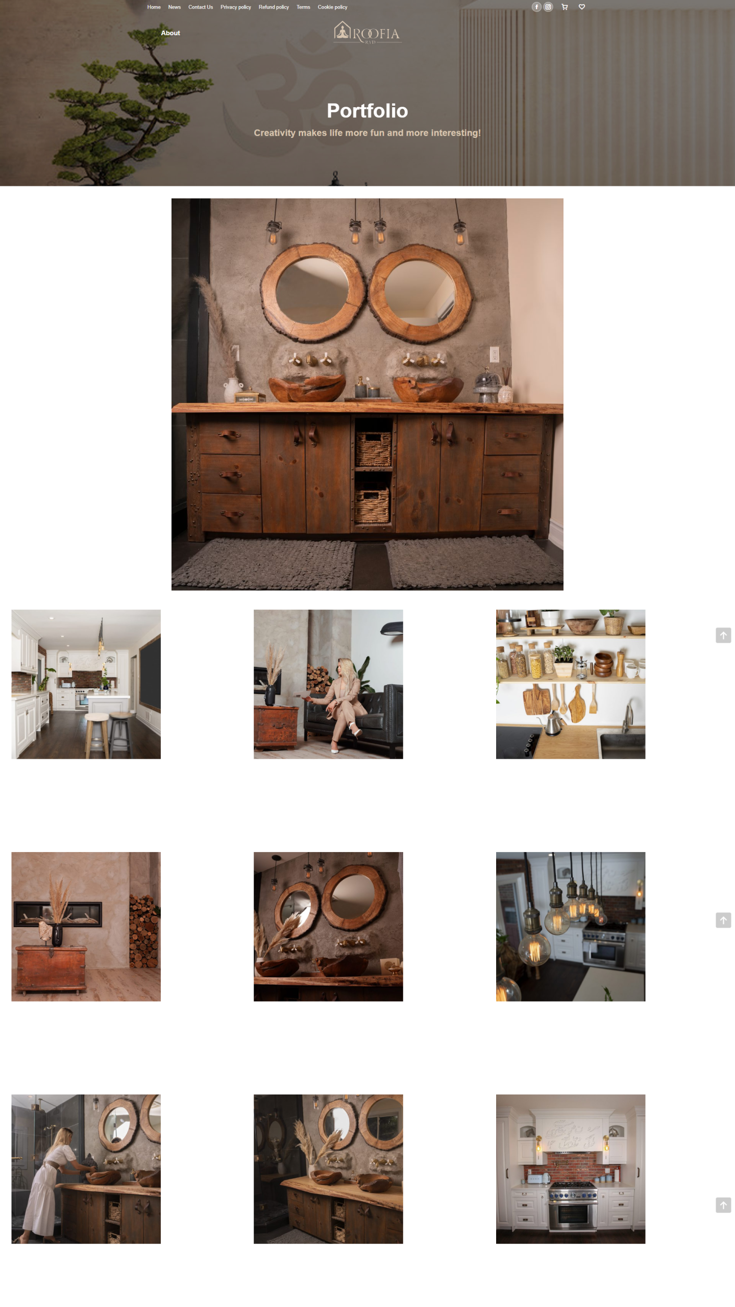 E-commerce / shop functionality alongside design/decor content, allowing clients both inspiration and purchase options.